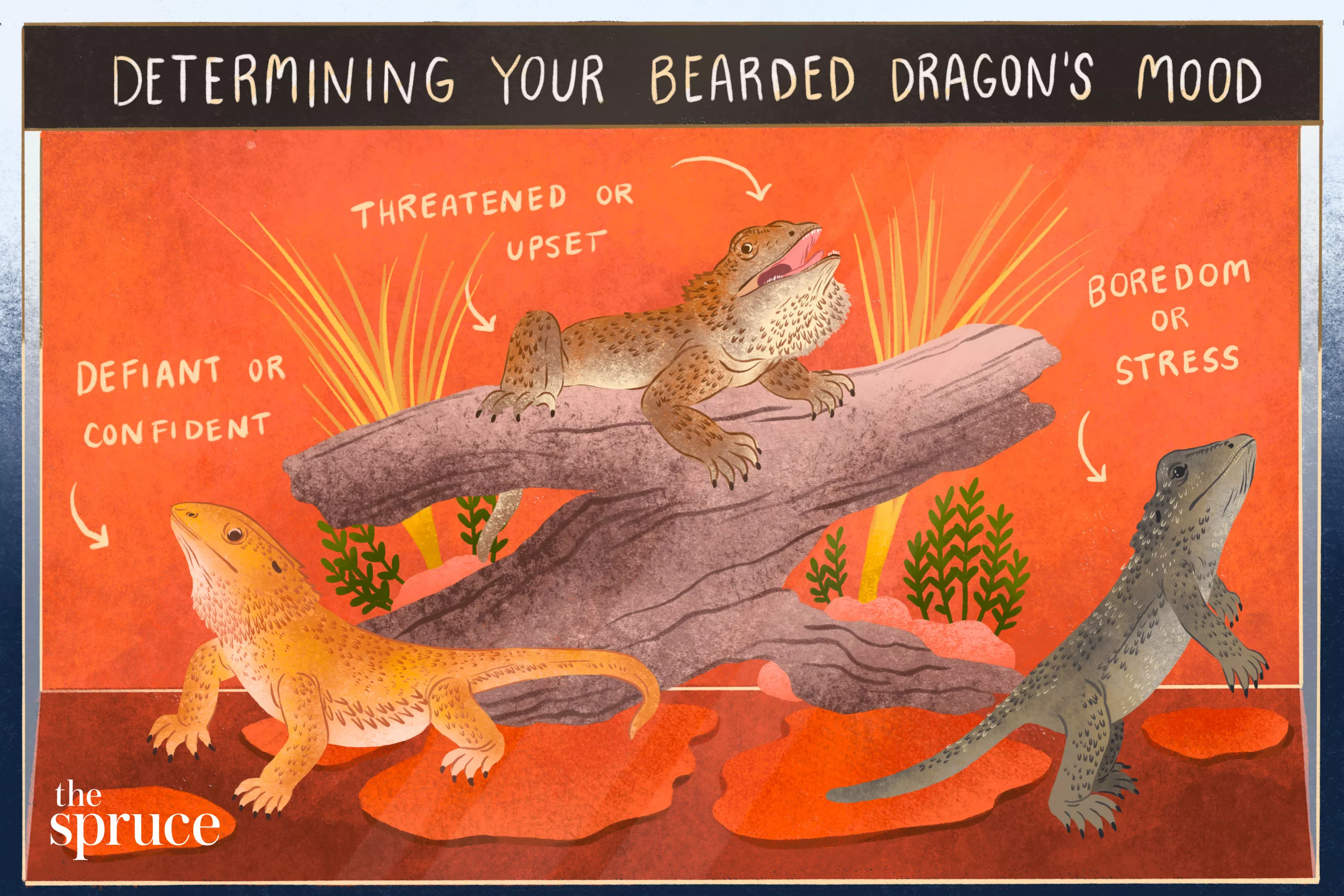 Key Takeaways Bearded dragons show dominance or submission through behaviors like "The Wave" and "The Head Bob."Stress or threat can cause bearded dragons to puff their beard or change colors.Behaviors such as "Glass Surfing" and "Digging" can indicate stress, boredom, or natural instincts related to reproduction.