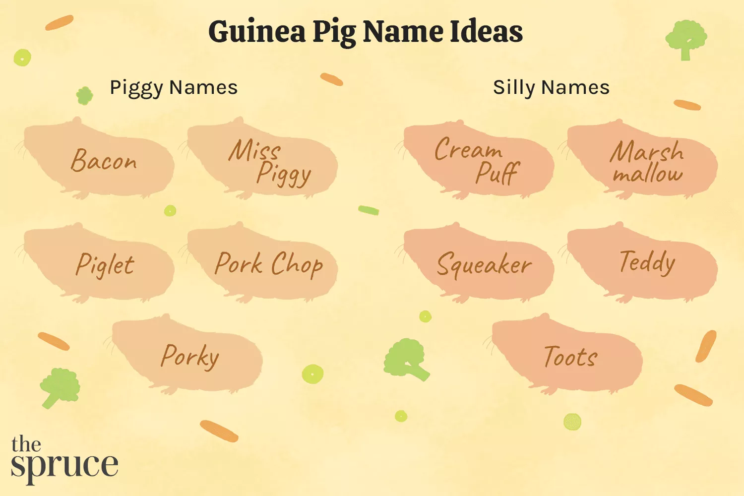 Key Takeaways Choosing a guinea pig name can be challenging, but considering the pet's personality, appearance, or unique traits can help.There are various categories to choose from, including cute, funny, and pig-related names.It's essential to select a name that will last throughout the guinea pig's lifespan, which is typically 4-8 years.