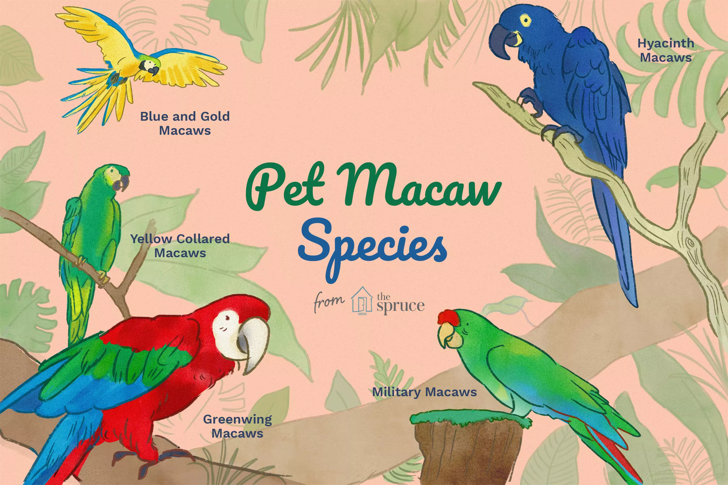 One of the most prized pet birds, there are 17 different types of macaws, each with its own unique needs and quirks. Several macaws are endangered, with the hyacinth, red-fronted, and blue-throated macaws among the most seriously endangered.