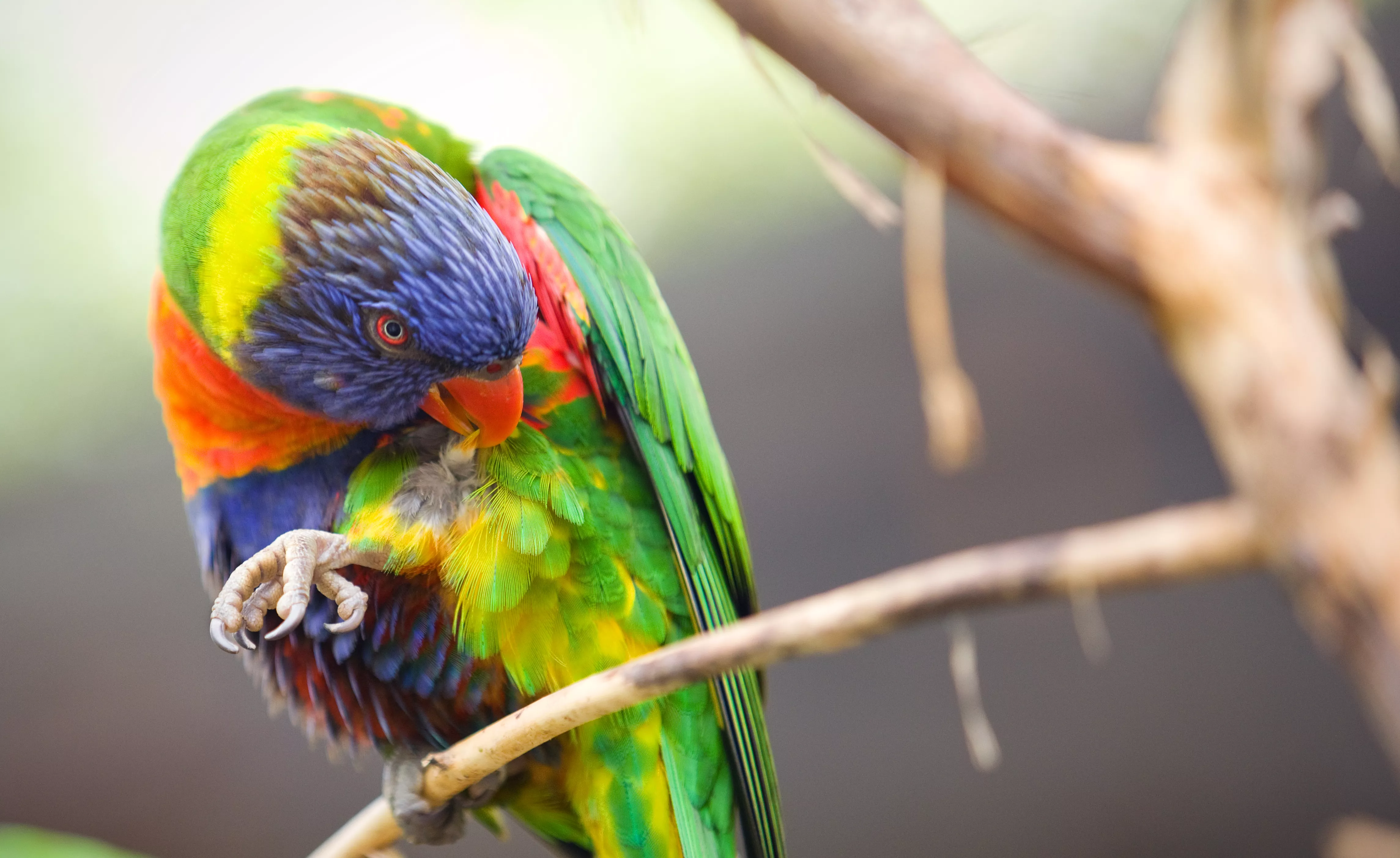 ![Rainbow Lorikeet -Trichoglossus haematodus-, adult bird perched on a tree, calling, South Australia, Australia]